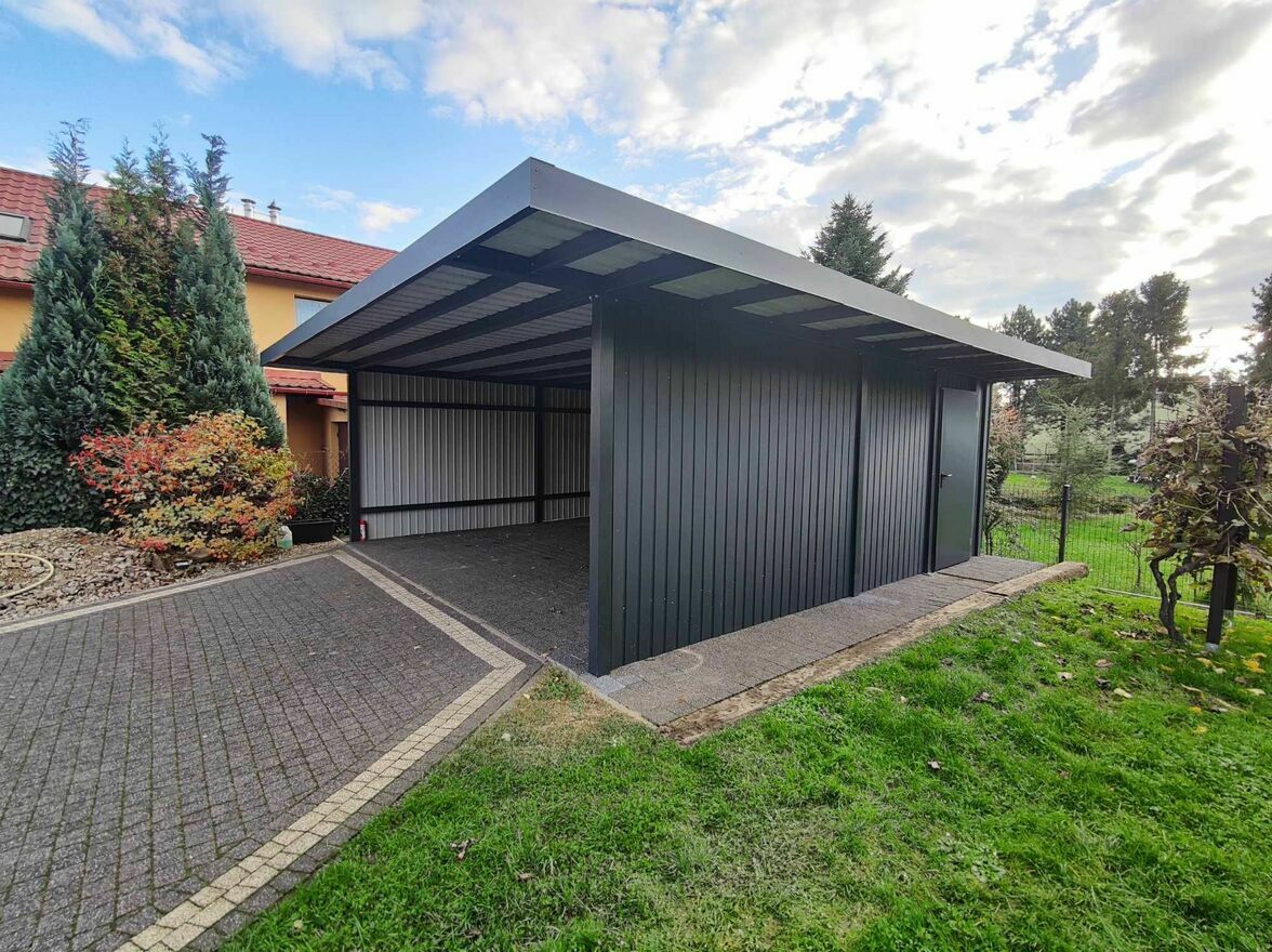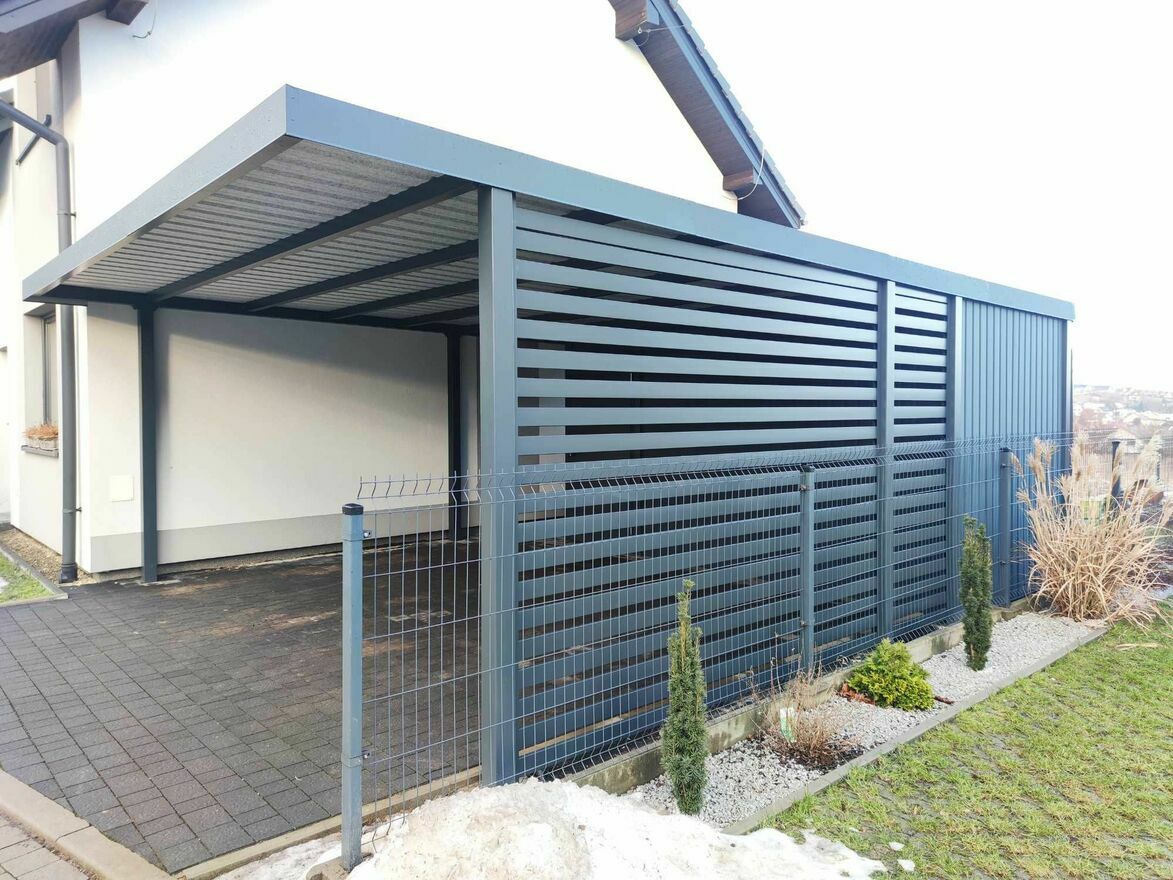 Cena nie dotyczy ścianek bocznych carportu oraz zaplecza narzędziowego.
