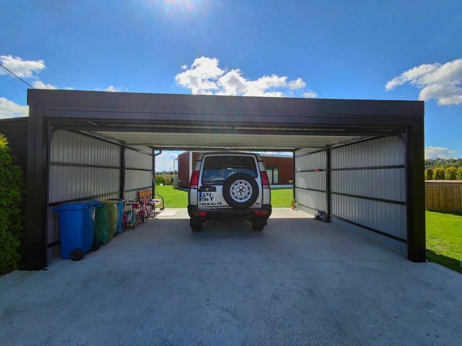 Zdjęcia są własnością firmy Ocel z prawami autorskimi.Luksusowe wiaty garażowe dostosowane pod montaż fotowoltaiki, bram segmentowych oraz pomieszczeń gospodarczych.